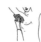 6. Поместить термометр так, чтобы резервуар с ртутью или кончик датчика электронного термометра находился в центре подмышечной впадины пациента и со всех сторон соприкасался с кожей, между термометром и телом не должно попадать бельё.