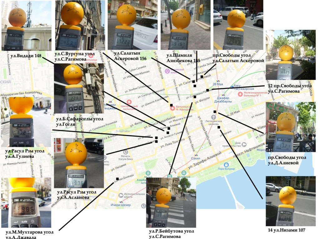 У пациентов с заболеваниями щитовидной железы это может вызывать обострение течения заболевания или осложнения. Согласно действующим санитарным нормам, допустимый уровень плотности электромагнитного излучения равен 10 мкВт/см.кв. К сожалению, в некоторых местах города Баку, в связи с неправильной установкой антенн мобильной связи, этот безопасный уровень превышен в 2 - 40 раз. В этой связи пациентам с заболеваниями щитовидной настоятельно рекомендуется избегать ниже обозначенные места.